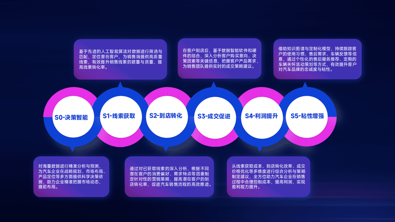 通过拓宽潜在客户来源、、、优化线索分配并提高到店转化率,,,,以增强销售效率。。同时,,利用线索数据不断优化分析模型,,有效提升转化率,,,扩大营销影响力。。